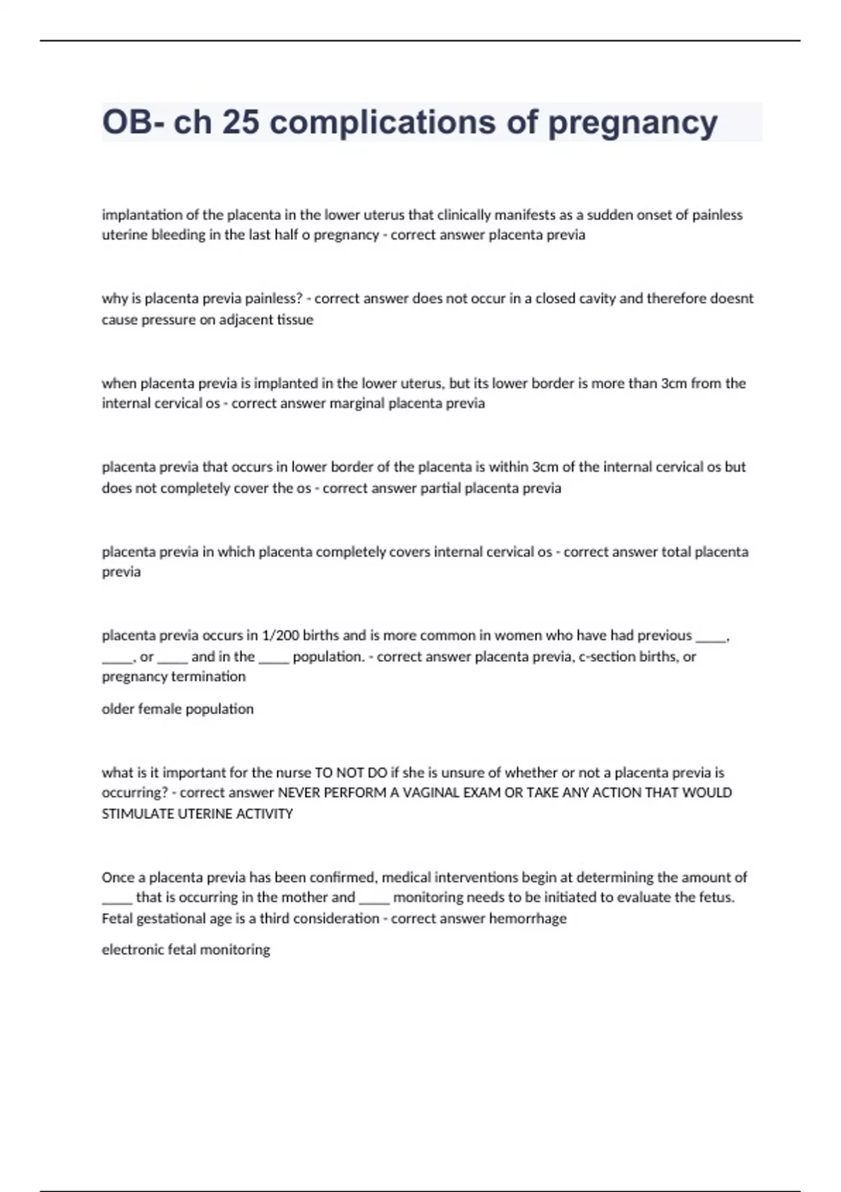 OB- ch 25 complications of pregnancy questions and answers verified 2024