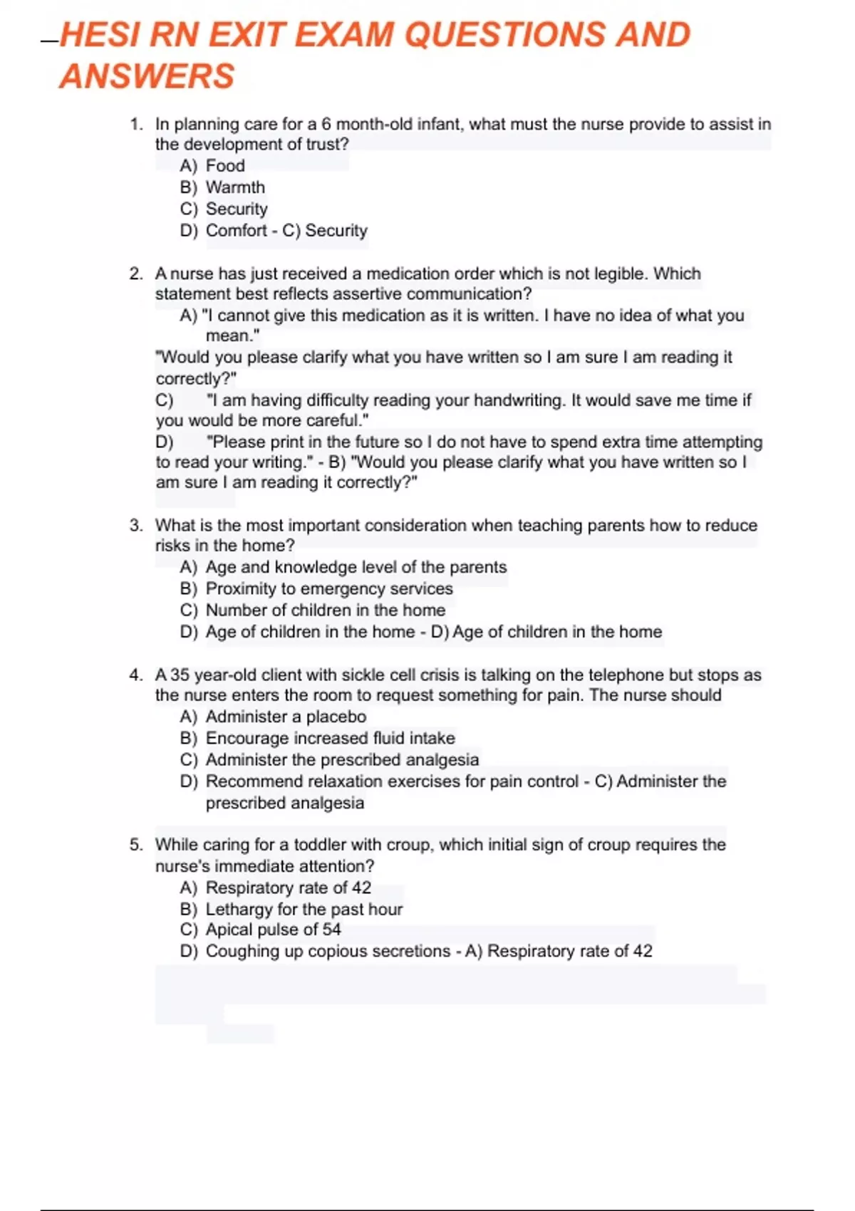 HESI RN EXIT Exam Questions and Verified Correct Answers | Brand New !!!! Guaranteed A+