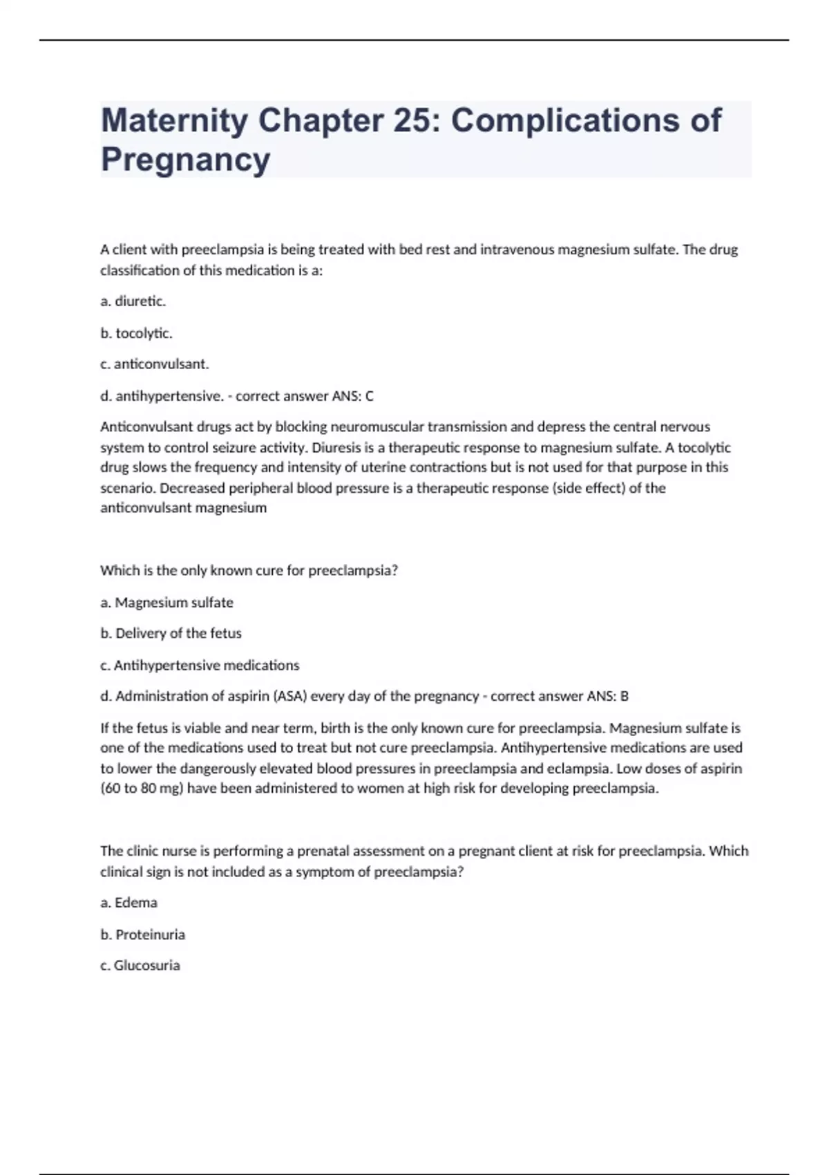 Maternity Chapter 25 Complications of Pregnancy questions and answers verified 2024