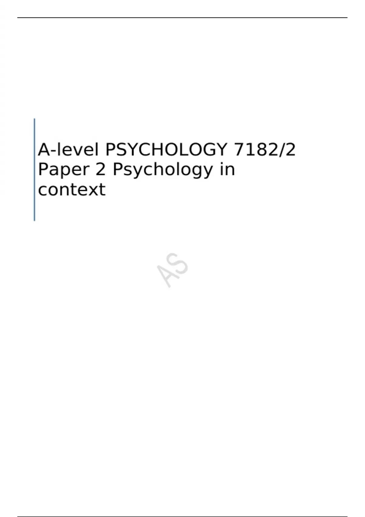 A-level PSYCHOLOGY 7182/2 Paper 2 Psychology in context
