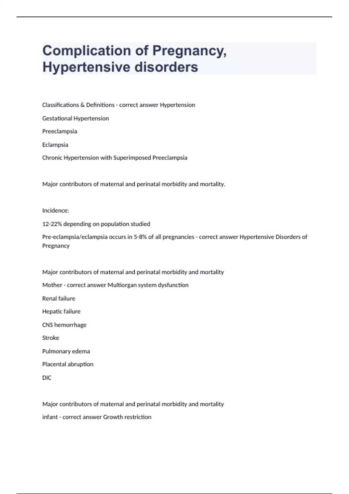 Complication of Pregnancy, Hypertensive disorders. questions and answers certified 2024