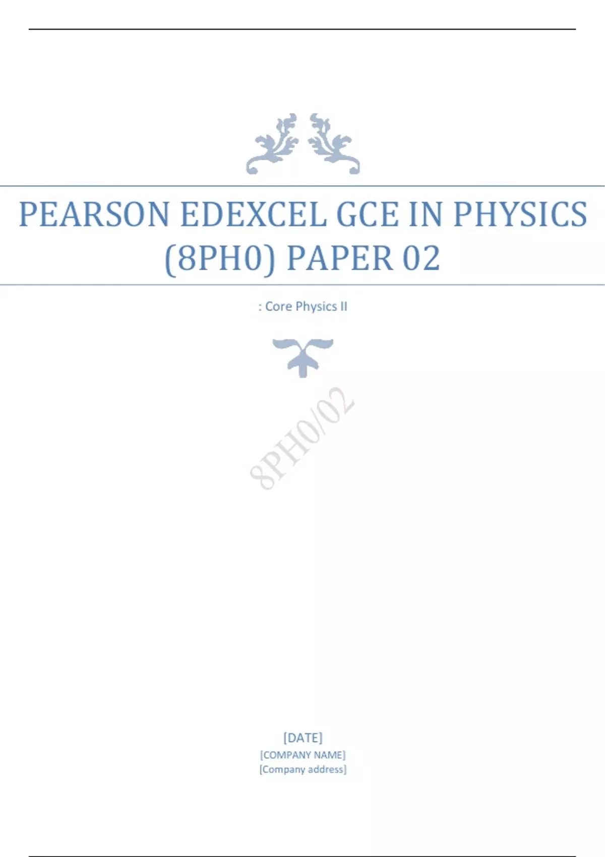 PEARSON EDEXCEL GCE IN PHYSICS (8PH0) PAPER 02