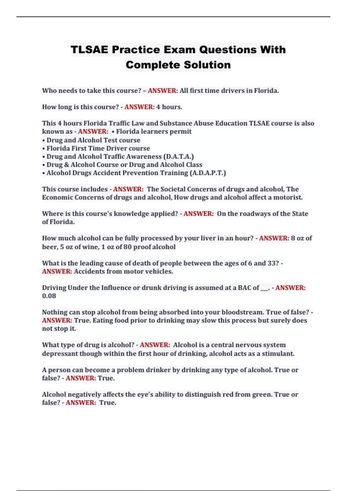 TLSAE Practice Exam Questions With Complete Solution