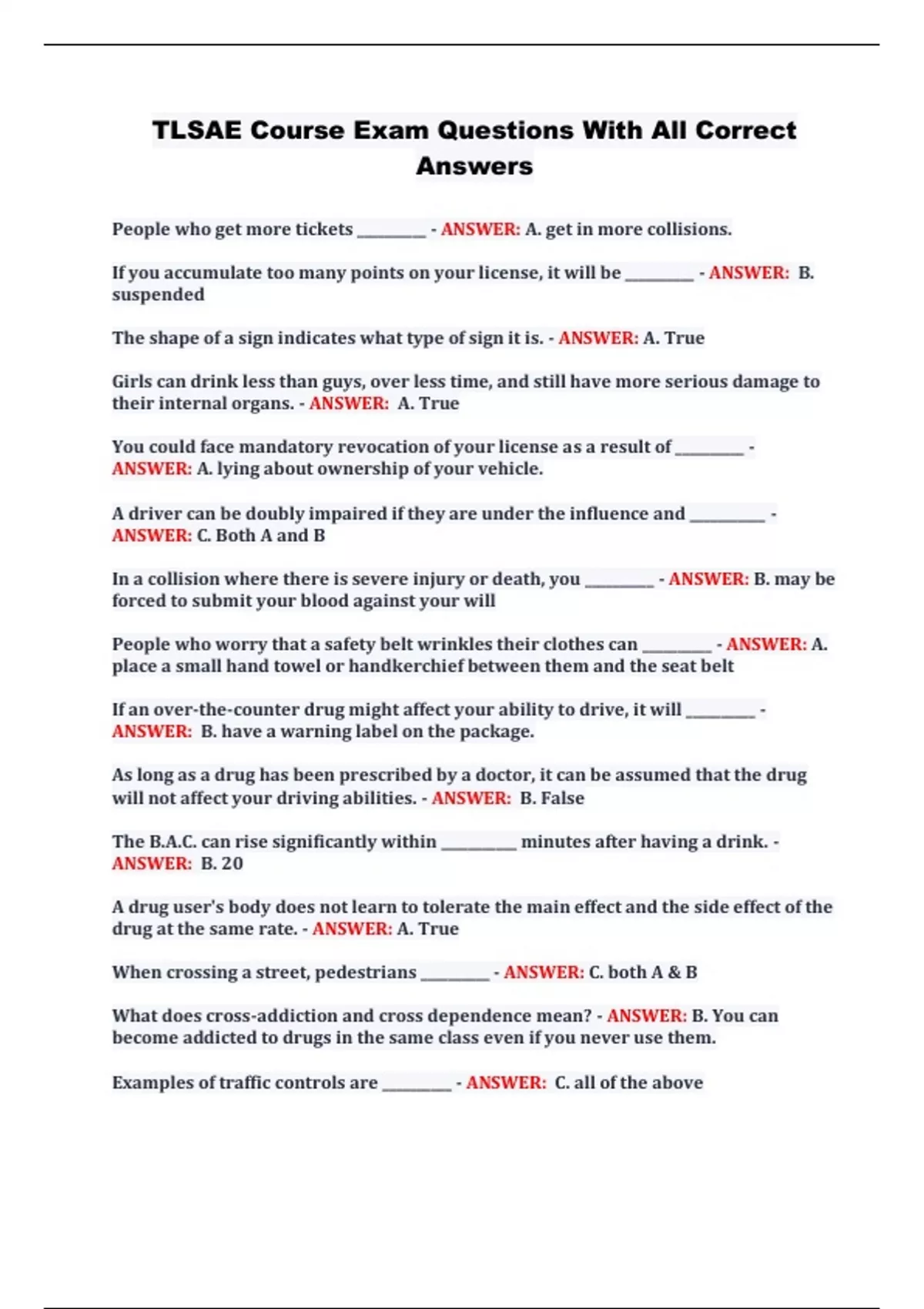 Package Deal For Florida TLSAE Exams 100% Correct Questions and Answers