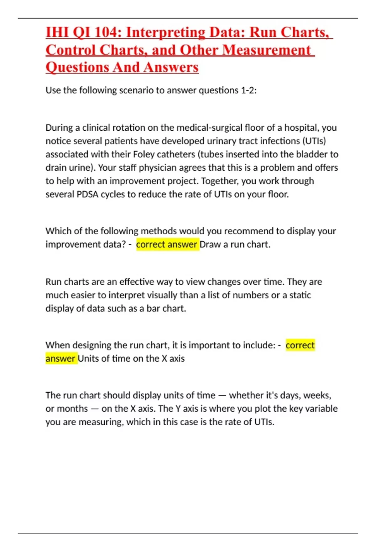 IHI QI 104: Interpreting Data: Run Charts, Control Charts, and Other Measurement Questions And Answers