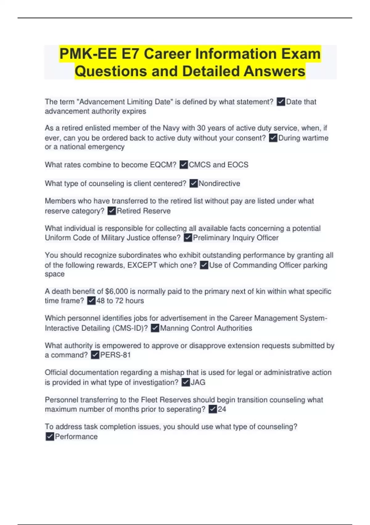 PMK-EE E7 Career Information Exam Questions and Detailed Answers