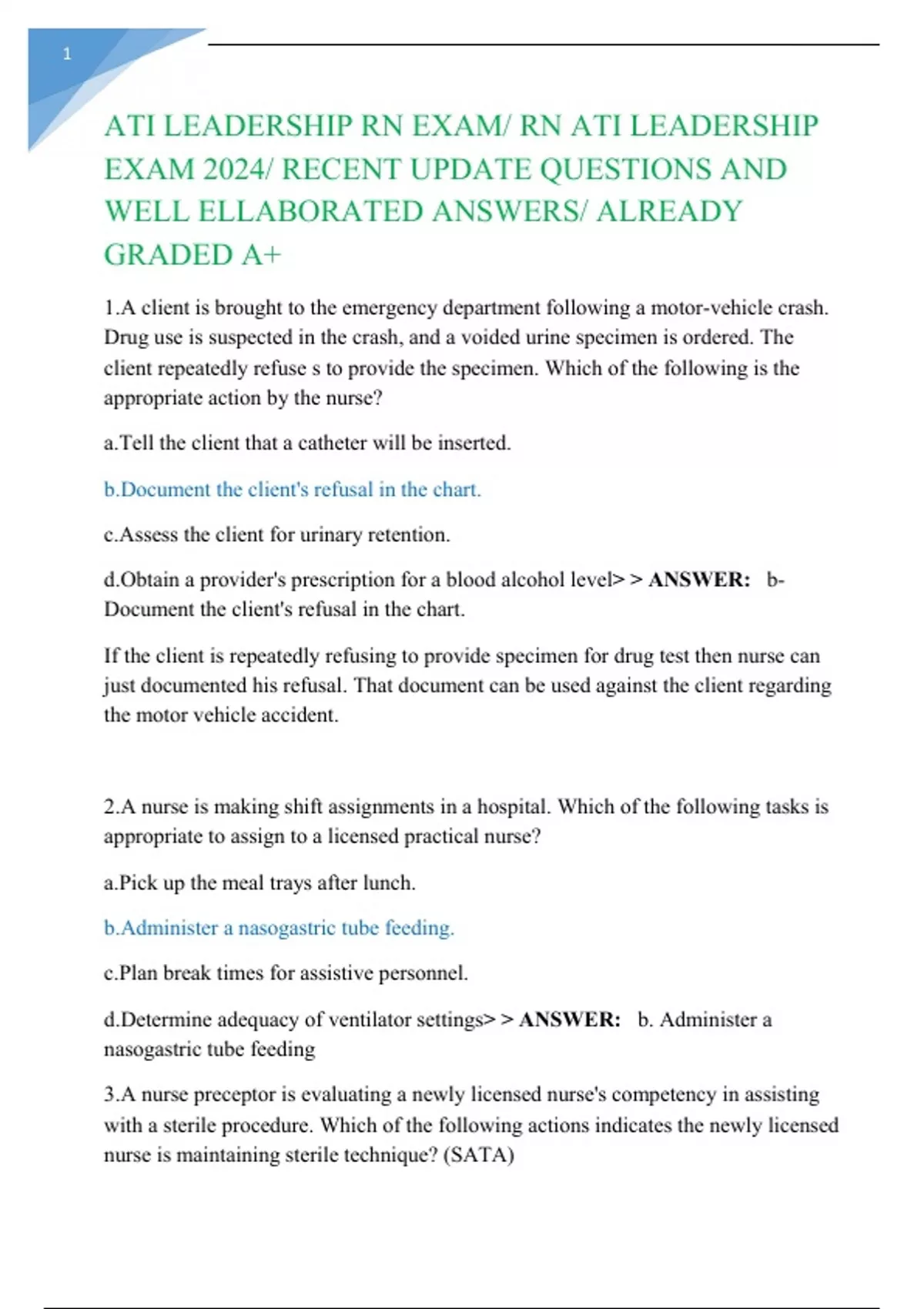ATI LEADERSHIP RN EXAM/ RN ATI LEADERSHIP EXAM 2024/ RECENT UPDATE QUESTIONS AND WELL ELLABORATED ANSWERS/ ALREADY GRADED A+