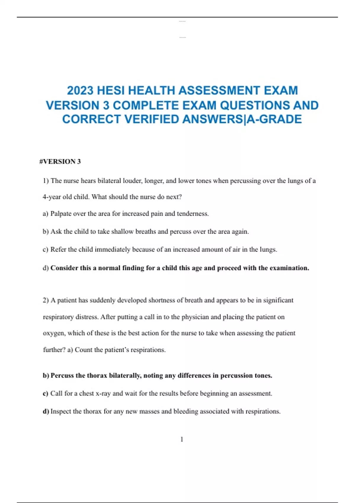 2023 HESI HEALTH ASSESSMENT EXAM VERSION 3 COMPLETE EXAM QUESTIONS AND CORRECT VERIFIED ANSWERS|A-GRADE