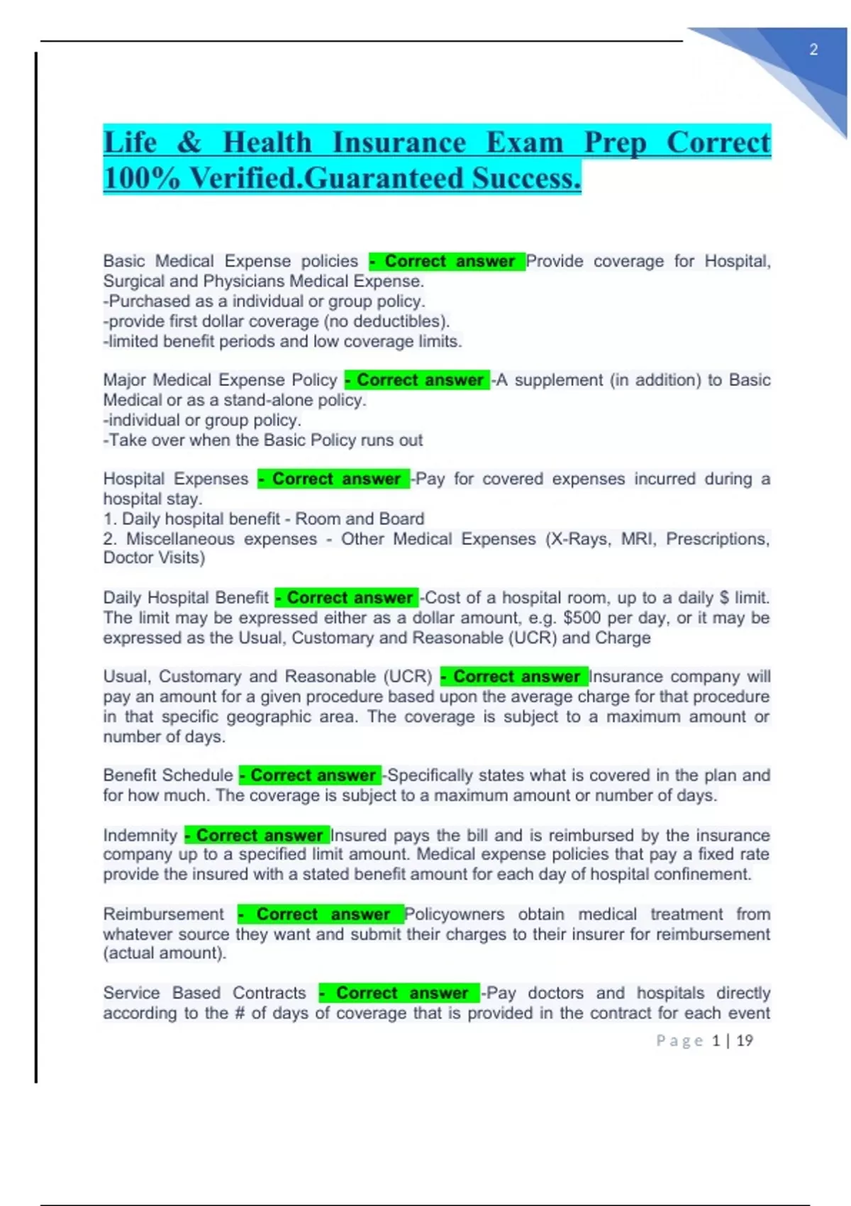 life health insurance exam prep correct 100 ver