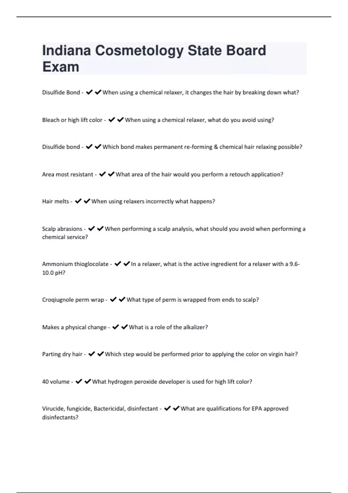 Indiana Cosmetology State Board Exam Questions and Answers(A+ Solution guide)