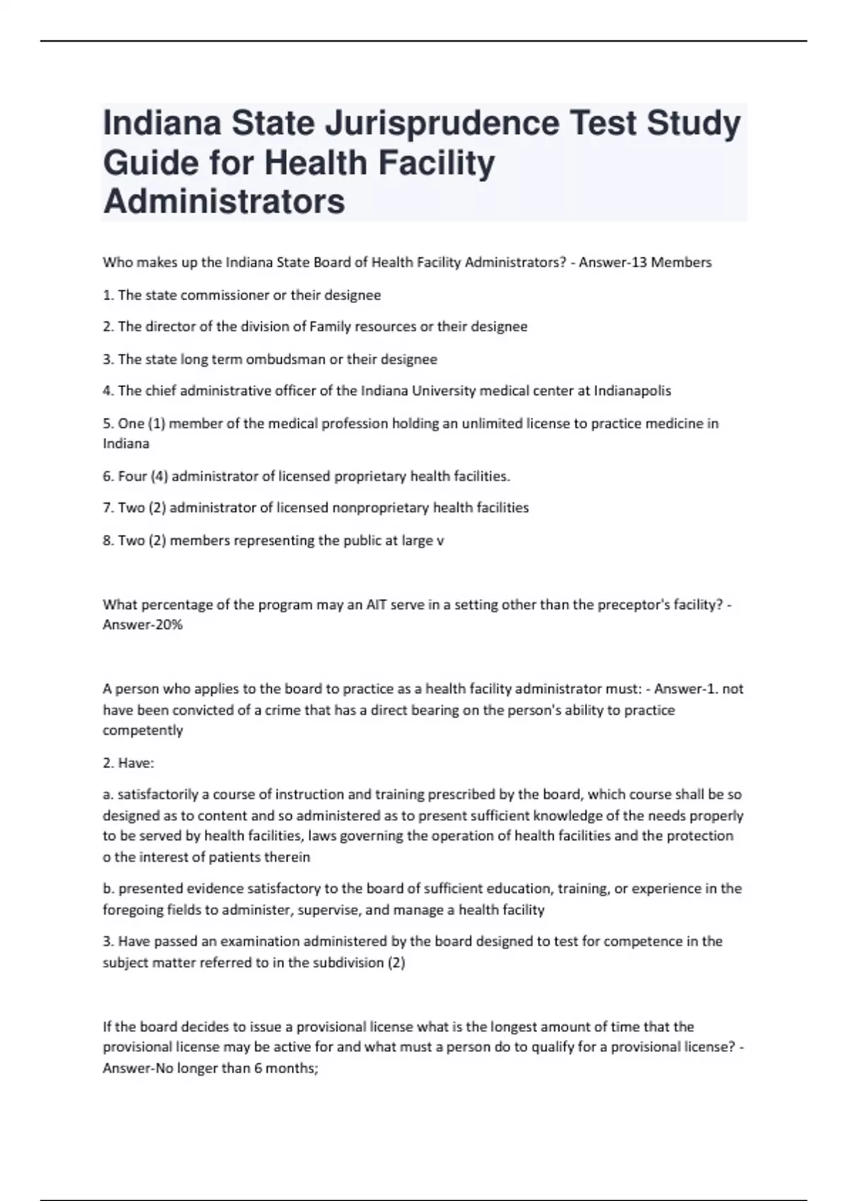 Indiana State Jurisprudence Test Study Guide for Health Facility Administrators Graded A+