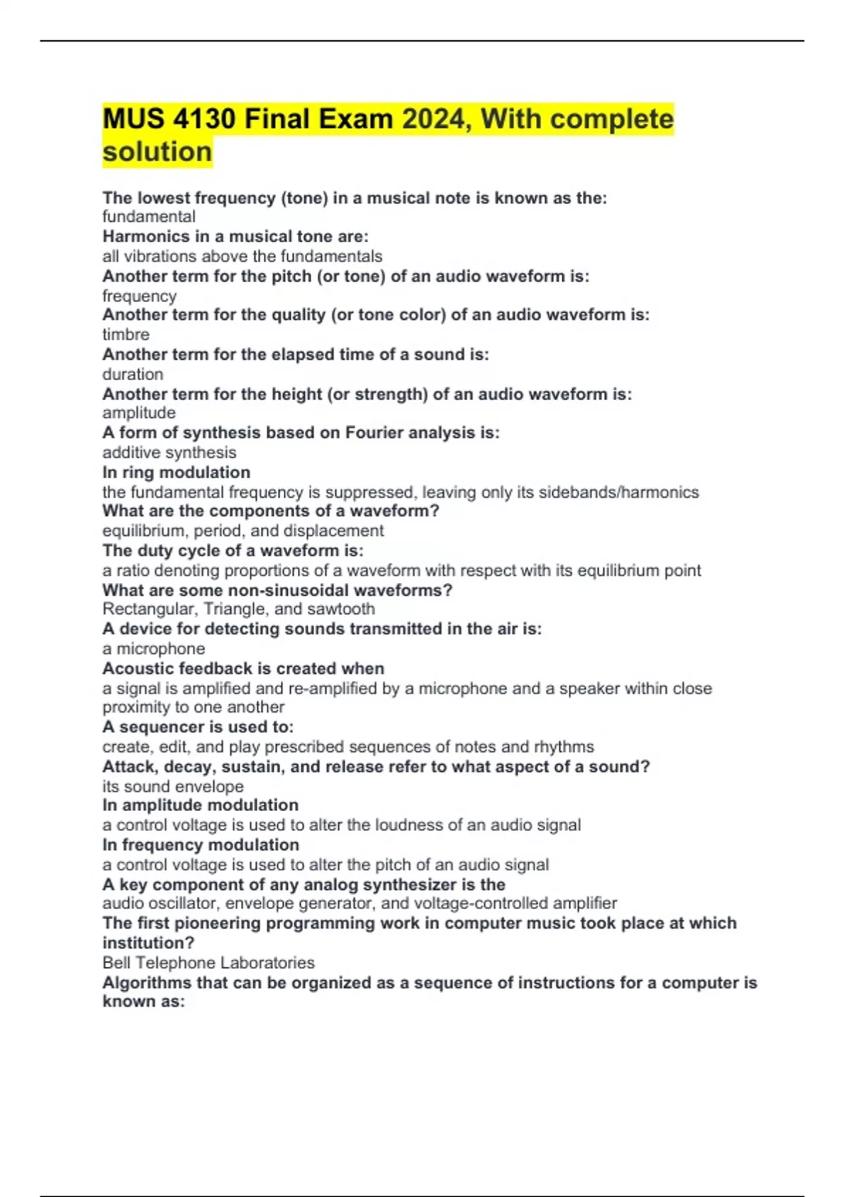 The lowest frequency (tone) in a musical note is known as the: