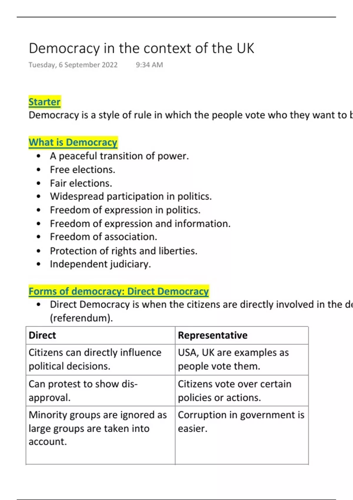Democracy in the context of the UK