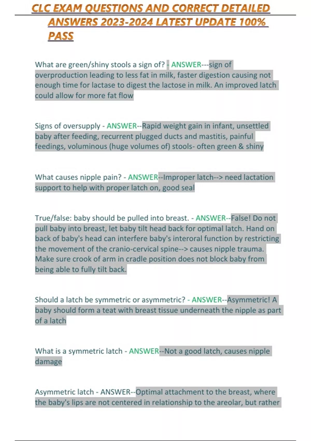 CLC EXAM QUESTIONS AND CORRECT DETAILED ANSWERS LATEST UPDATE 100% PASS