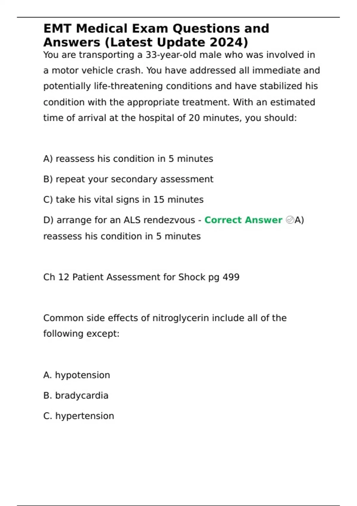 EMT Medical Exam Questions and Answers (Latest Update 2024)