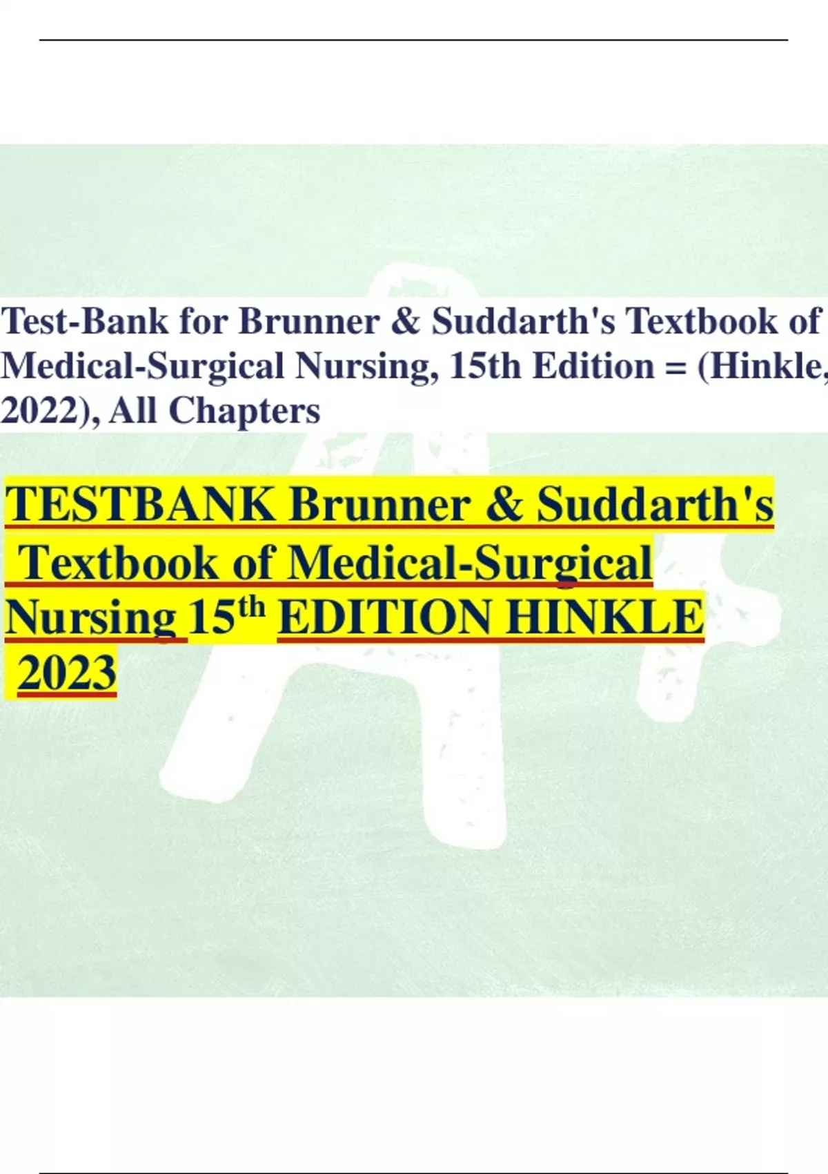 TESTBANK Brunner & Suddarth's Textbook of Medical-Surgical Nursing 15th EDITION HINKLE 2023