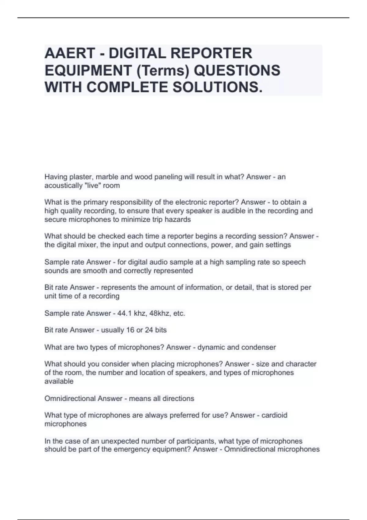 AAERT - DIGITAL REPORTER EQUIPMENT (Terms) QUESTIONS WITH COMPLETE SOLUTIONS.