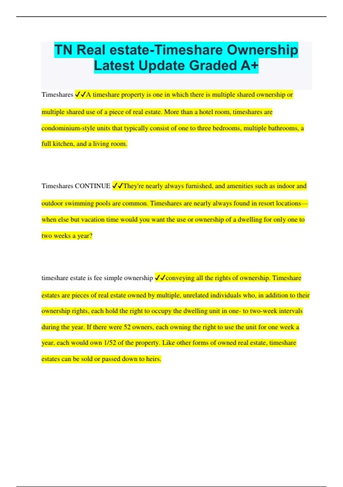 TN Real estate-Timeshare Ownership Latest Update Graded A+