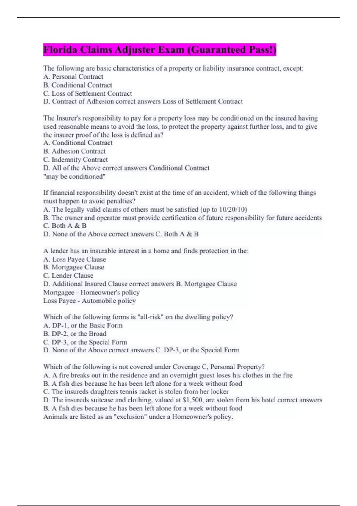 Florida Claims Adjuster Exam (Guaranteed Pass!)