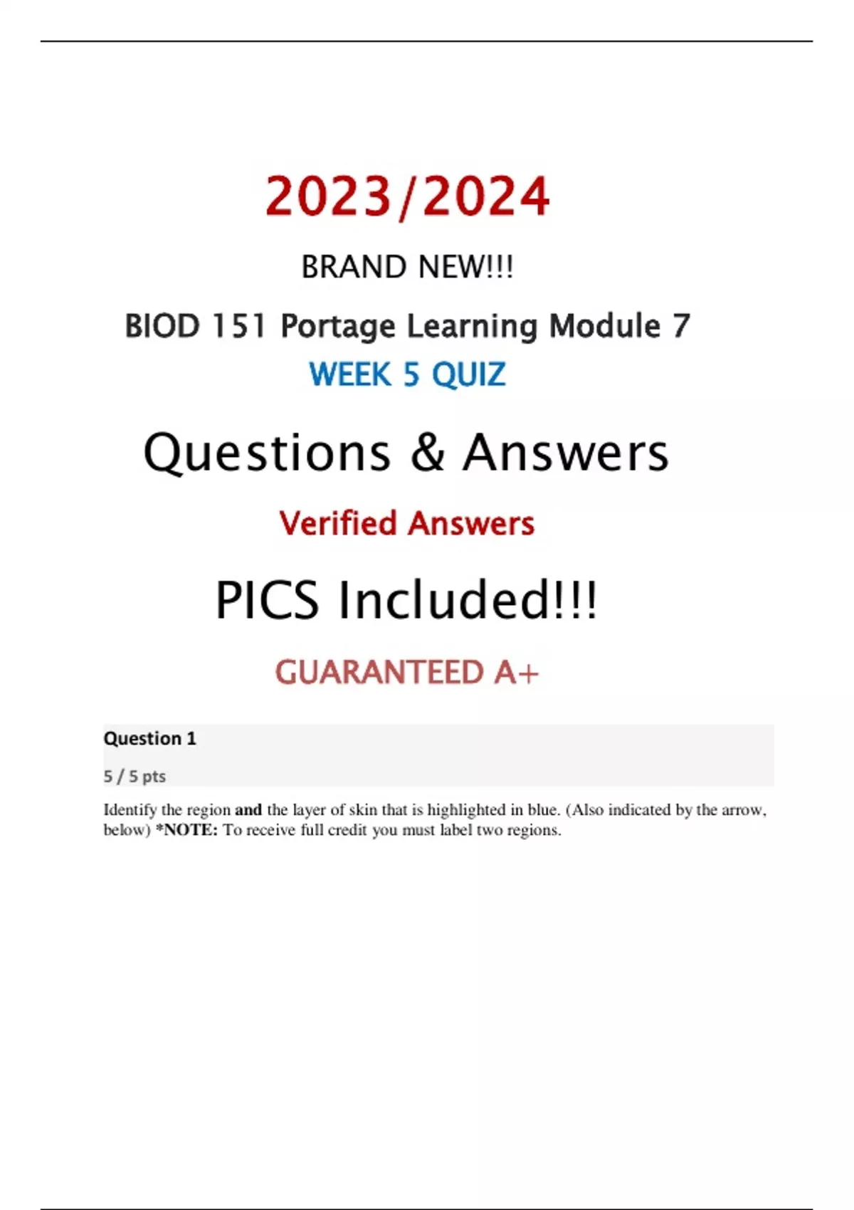 BIOD 151 Portage Learning Module 7 WEEK 5 QUIZ Updated 2024(Questions & Answers) Verified Answers PICS Included!!! GUARANTEED A+ BRAND NEW!!