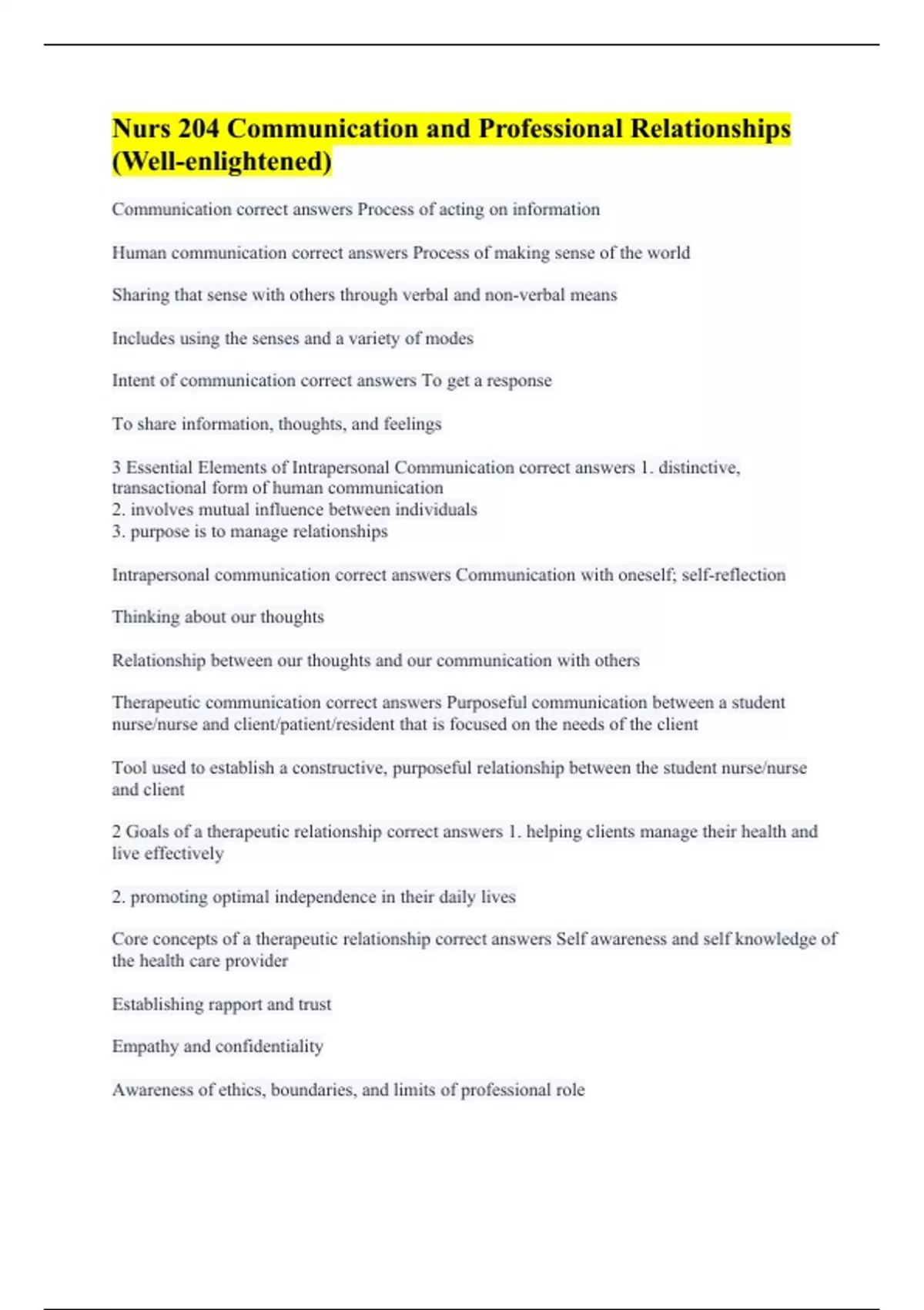 Nurs 204 Communication and Professional Relationships (Well-enlightened)