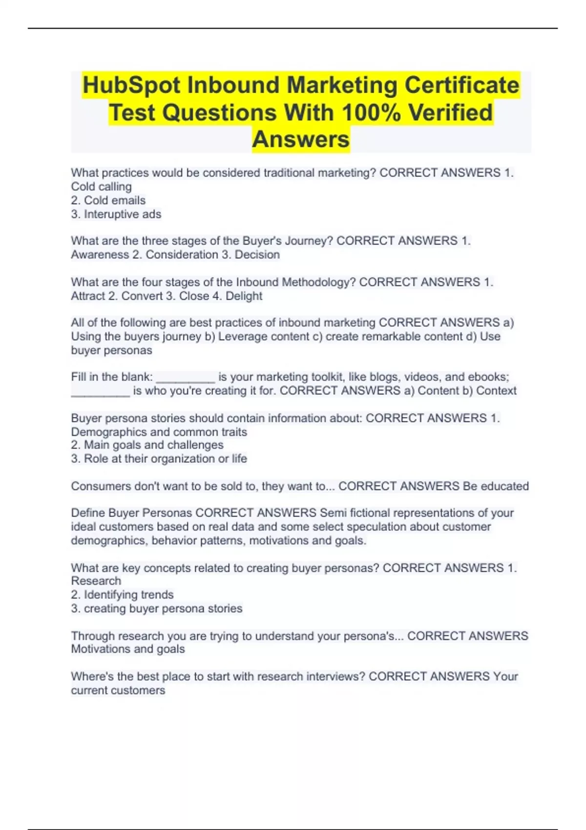 HubSpot Inbound Marketing Certificate Test Questions With 100