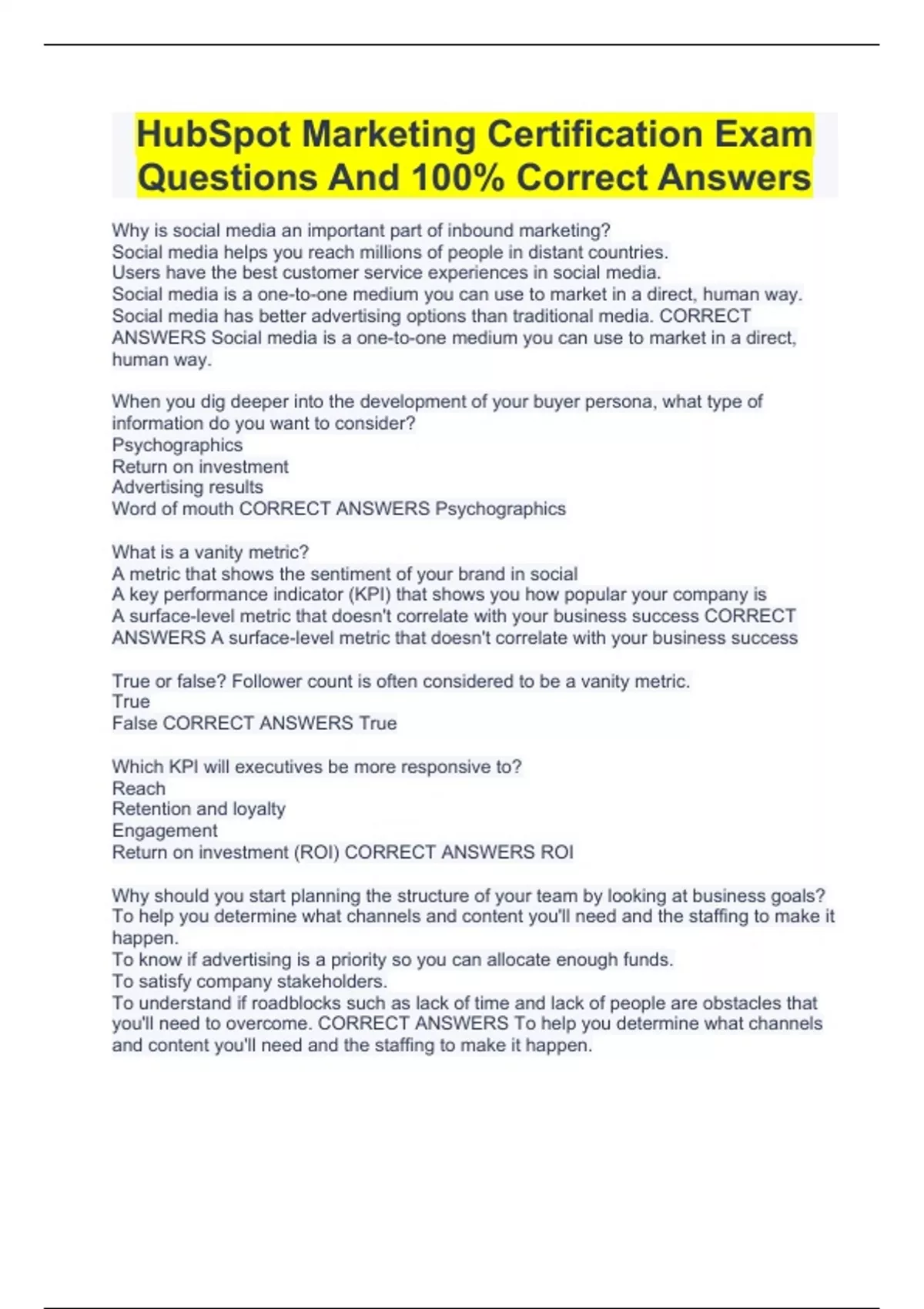 HubSpot Marketing Certification Exam Questions And 100