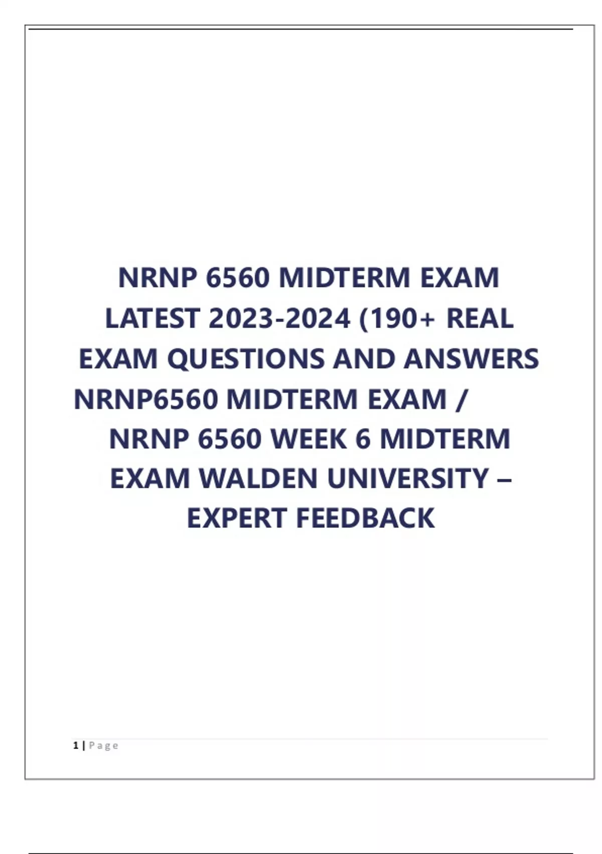 NRNP 6560 MIDTERM EXAM LATEST (190+ REAL EXAM QUESTIONS AND ANSWERS