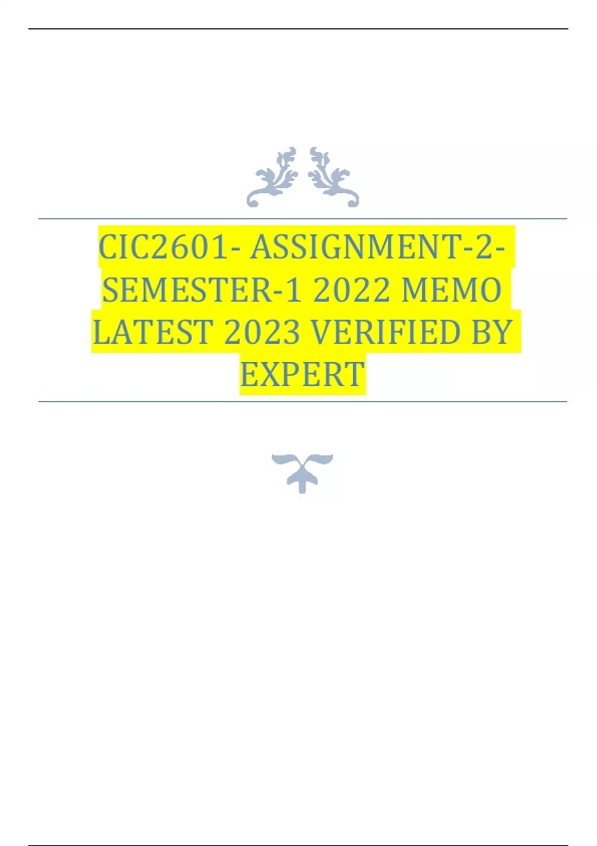 CIC2601 ASSIGNMENT 2 SEMESTER % TRUSTED workings, explanations and solutions.