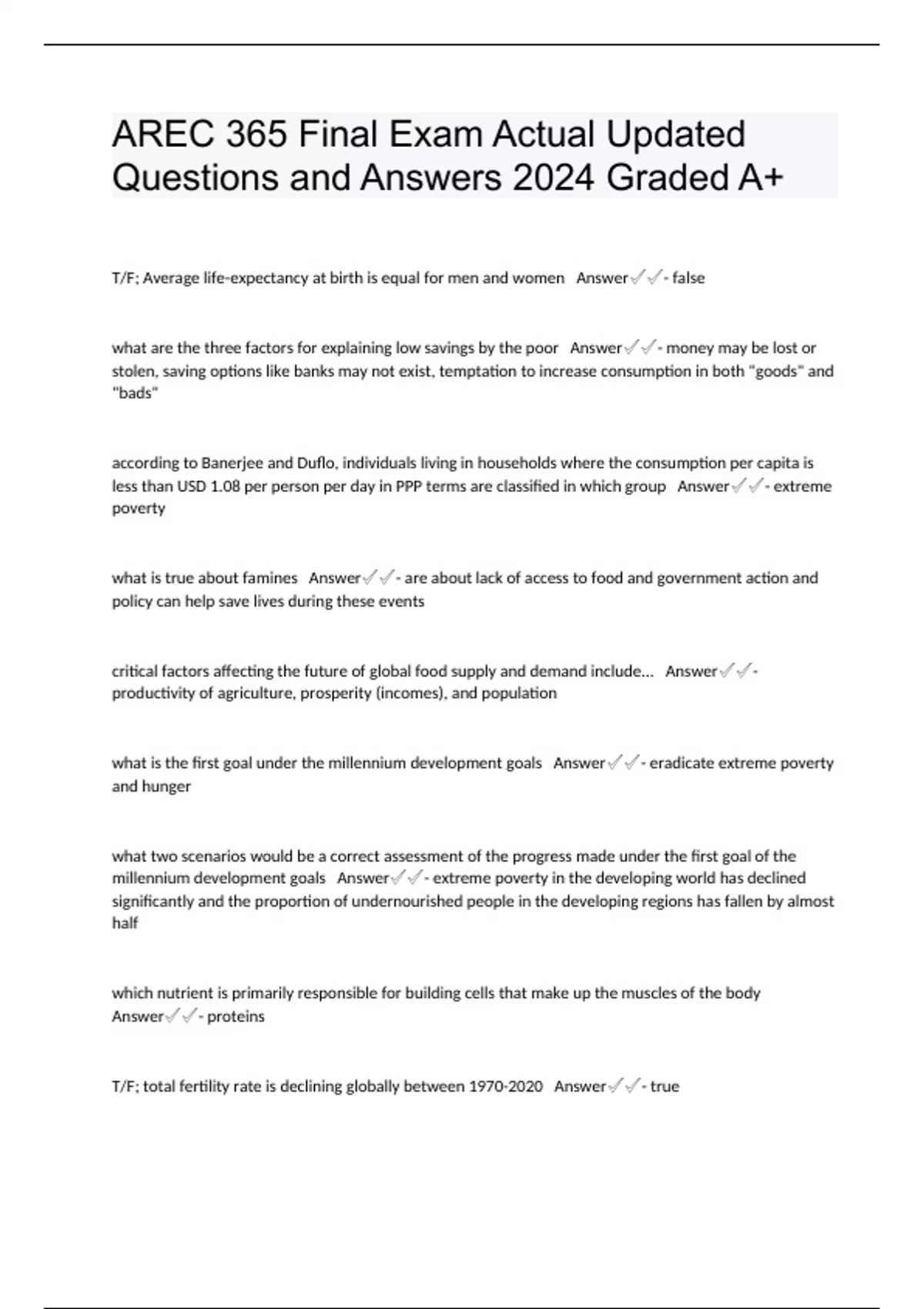 AREC 365 Final Exam Actual Updated Questions and Answers 2024 Graded A+