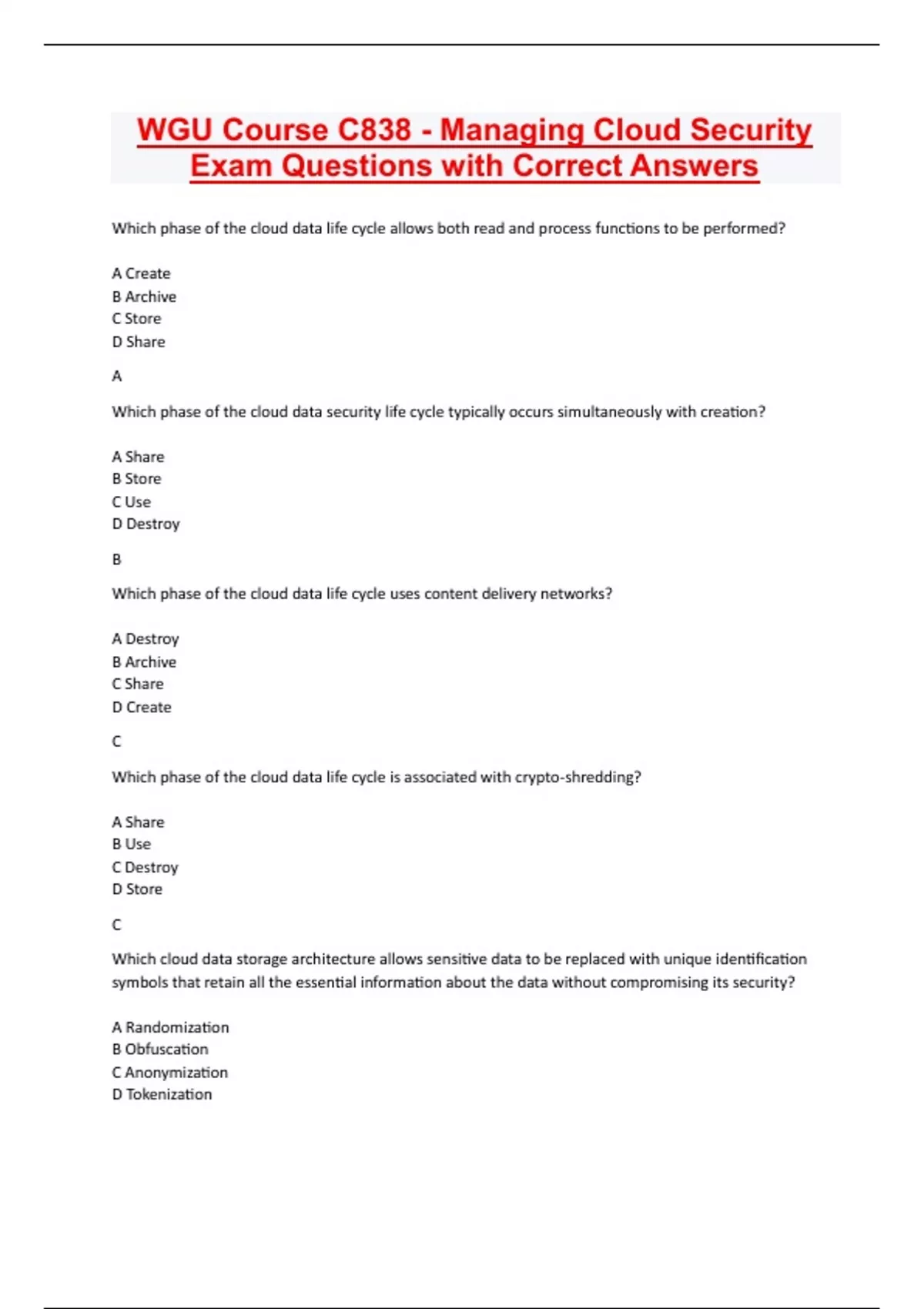 WGU Course C838 - Managing Cloud Security Exam Questions with Correct Answers