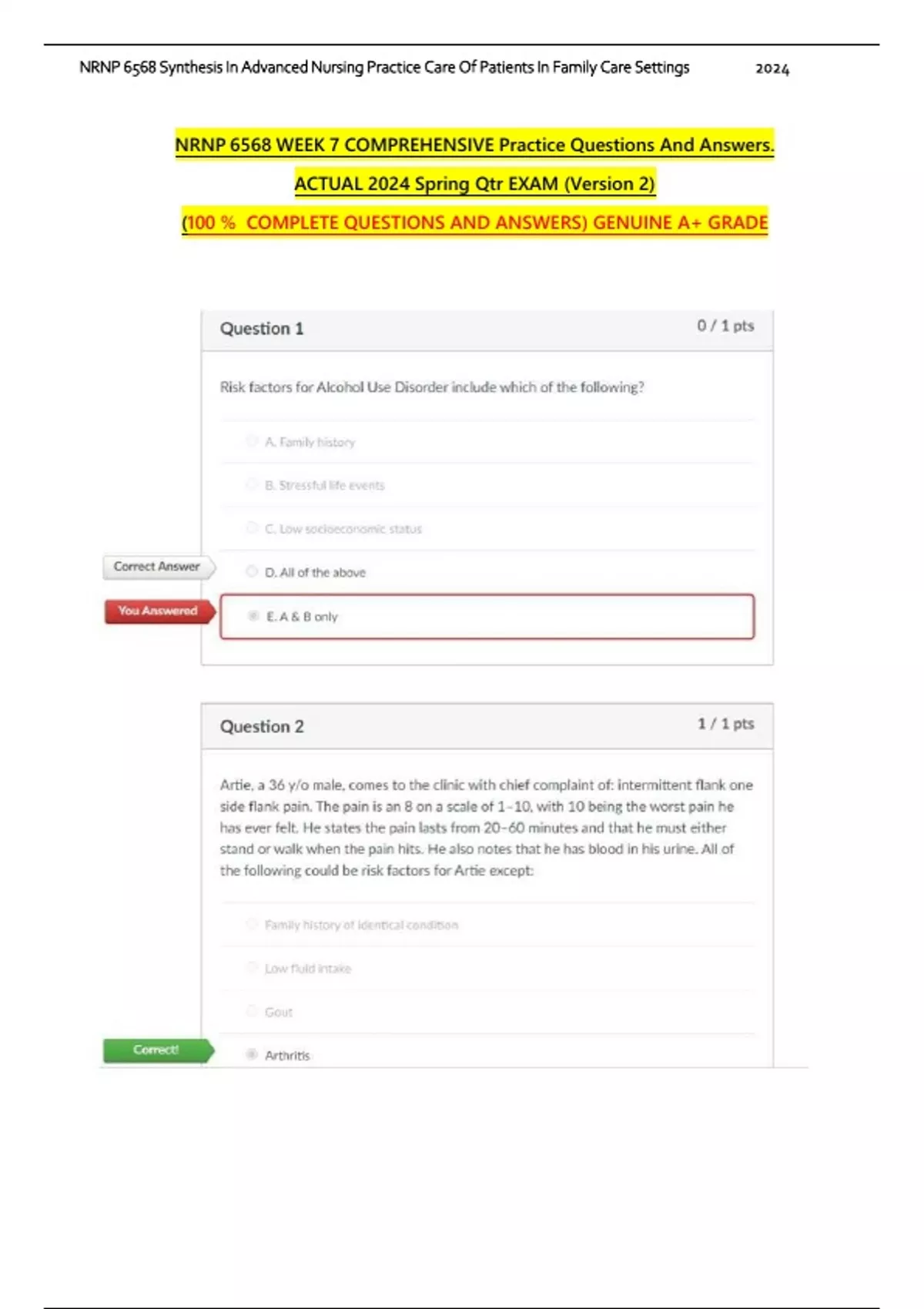 NRNP 6568 WEEK 7 COMPREHENSIVE Practice Questions And Answers. ACTUAL 2024 Spring Qtr EXAM (Version 2) (100 % COMPLETE QUESTIONS AND ANSWERS) GENUINE A+ GRADE
