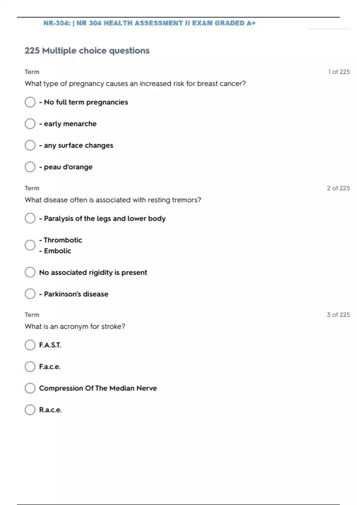 NR 304 HEALTH ASSESSMENT II EXAM 2 CONCEPT QUESTIONS WITH 100% SOLVED SOLUTIONS