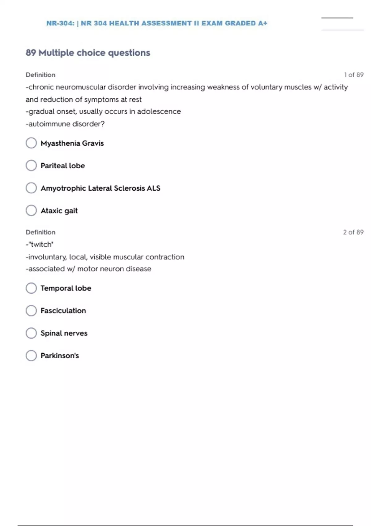 NR 304 HEALTH ASSESSMENT II NEURO QUESTIONS WITH 100% SOLVED SOLUTIONS
