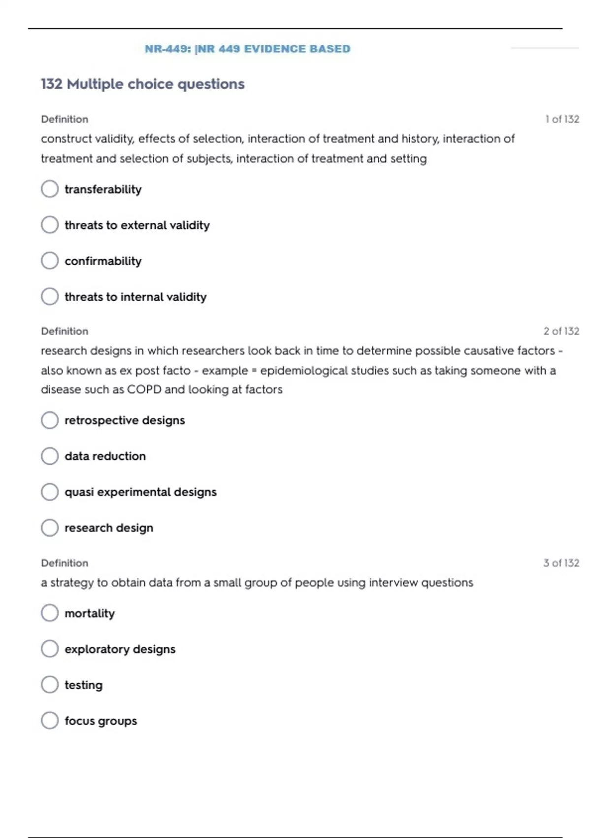 NR 449 EVIDENCE BASED PRACTICE TEST 3 QUESTIONS WITH 100% SOLVED SOLUTIONS