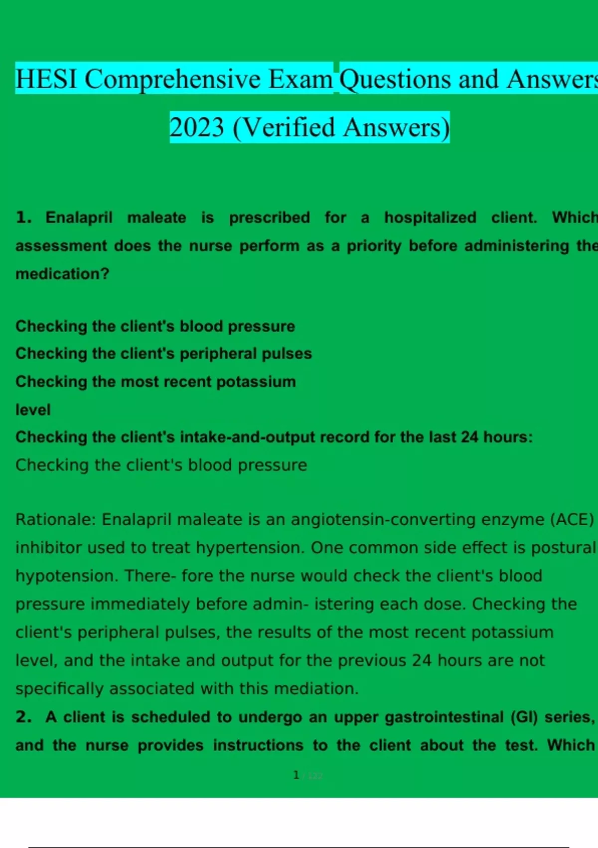 HESI Comprehensive Exam Questions & Answers 2023(A+GRADED 100%VERIFIED)