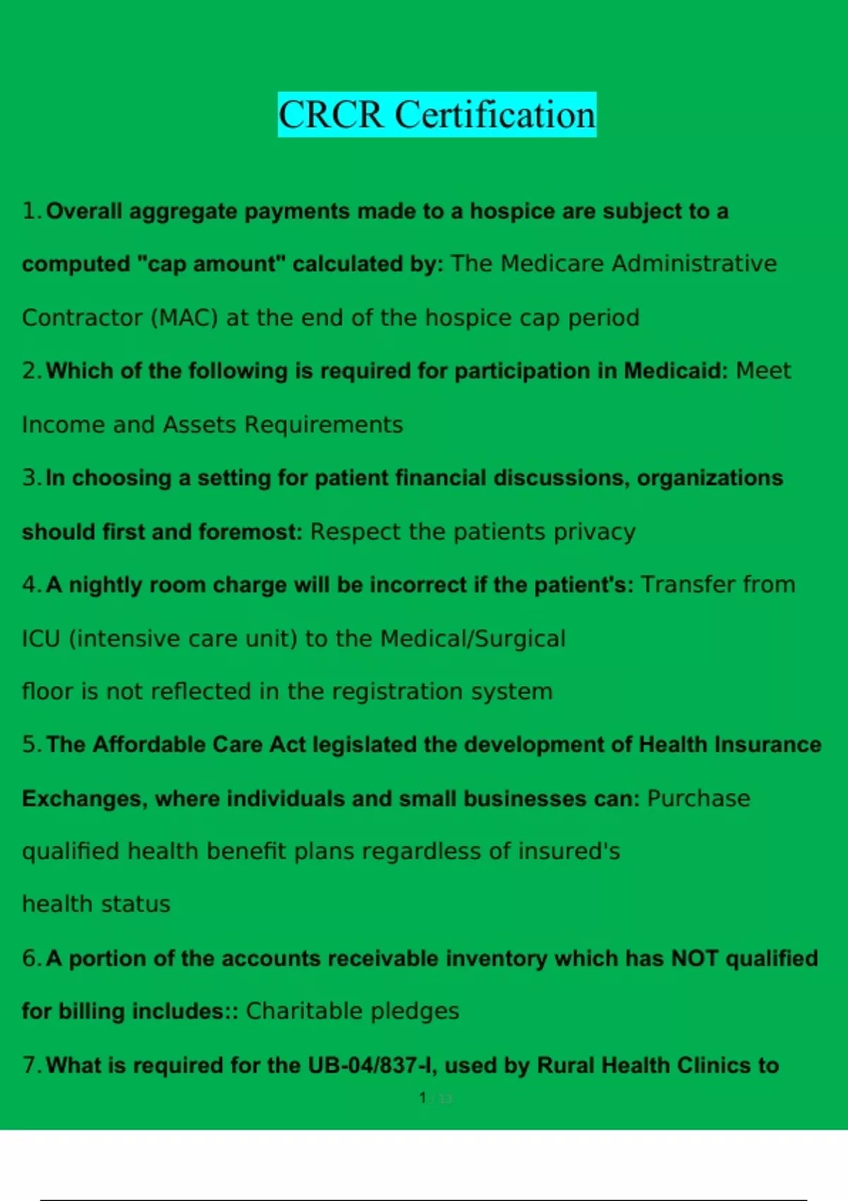 CRCR Certification Exam Questions and Answers 2023 (Verified Answers by Expert)