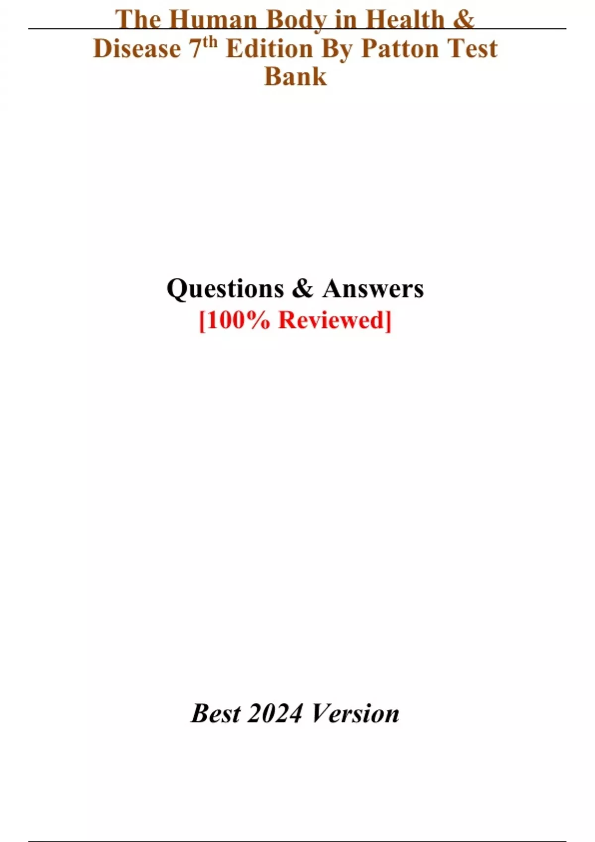 The Human Body in Health & Disease 7th Edition By Patton Test Bank - Questions & Answers (Graded A+) Best 2024 Version
