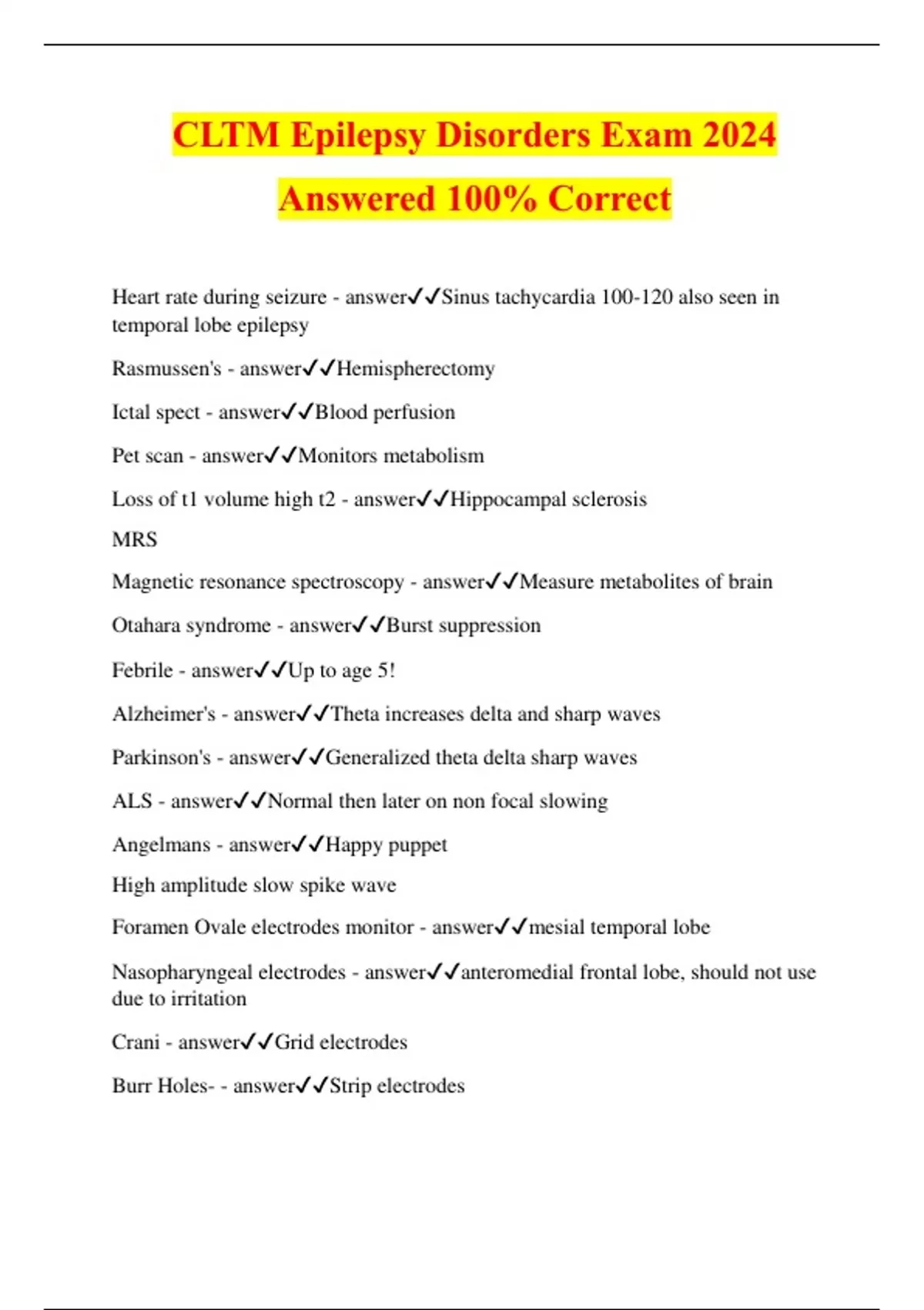 CLTM Epilepsy Disorders Exam 2024 Answered 100% Correct