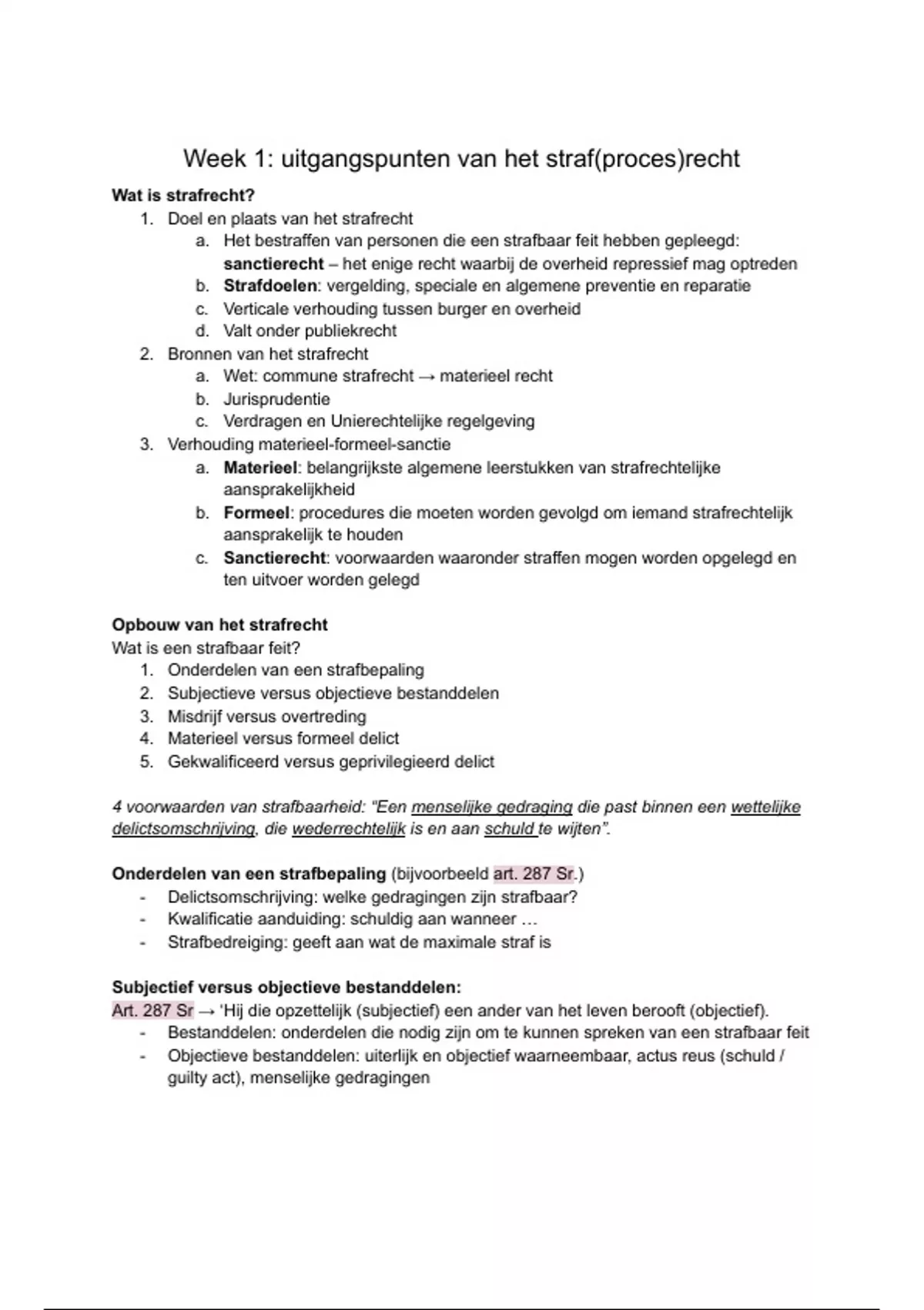 - Bestanddelen: onderdelen die nodig zijn om te kunnen spreken van een strafbaar feit