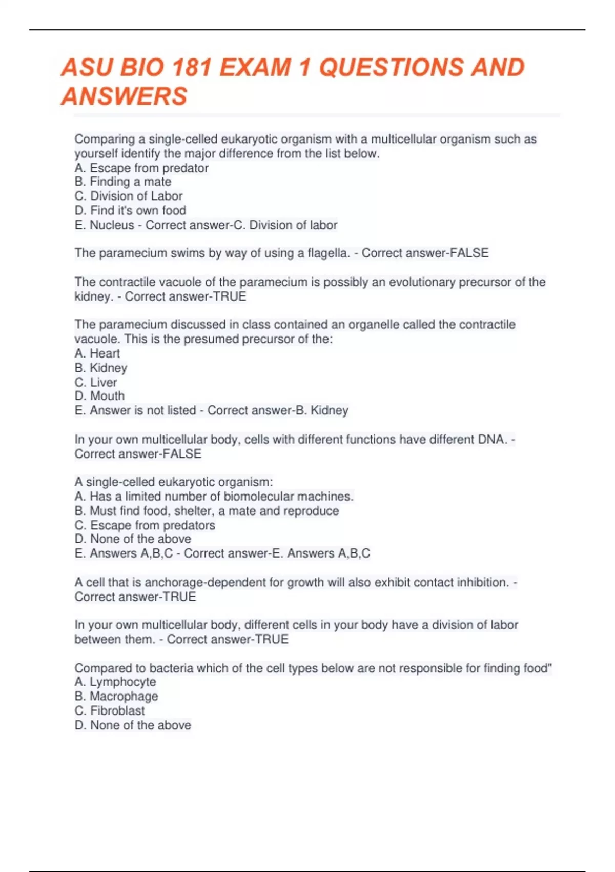 ASU BIO 182Exam 1 Questions With Answer| Graded A+