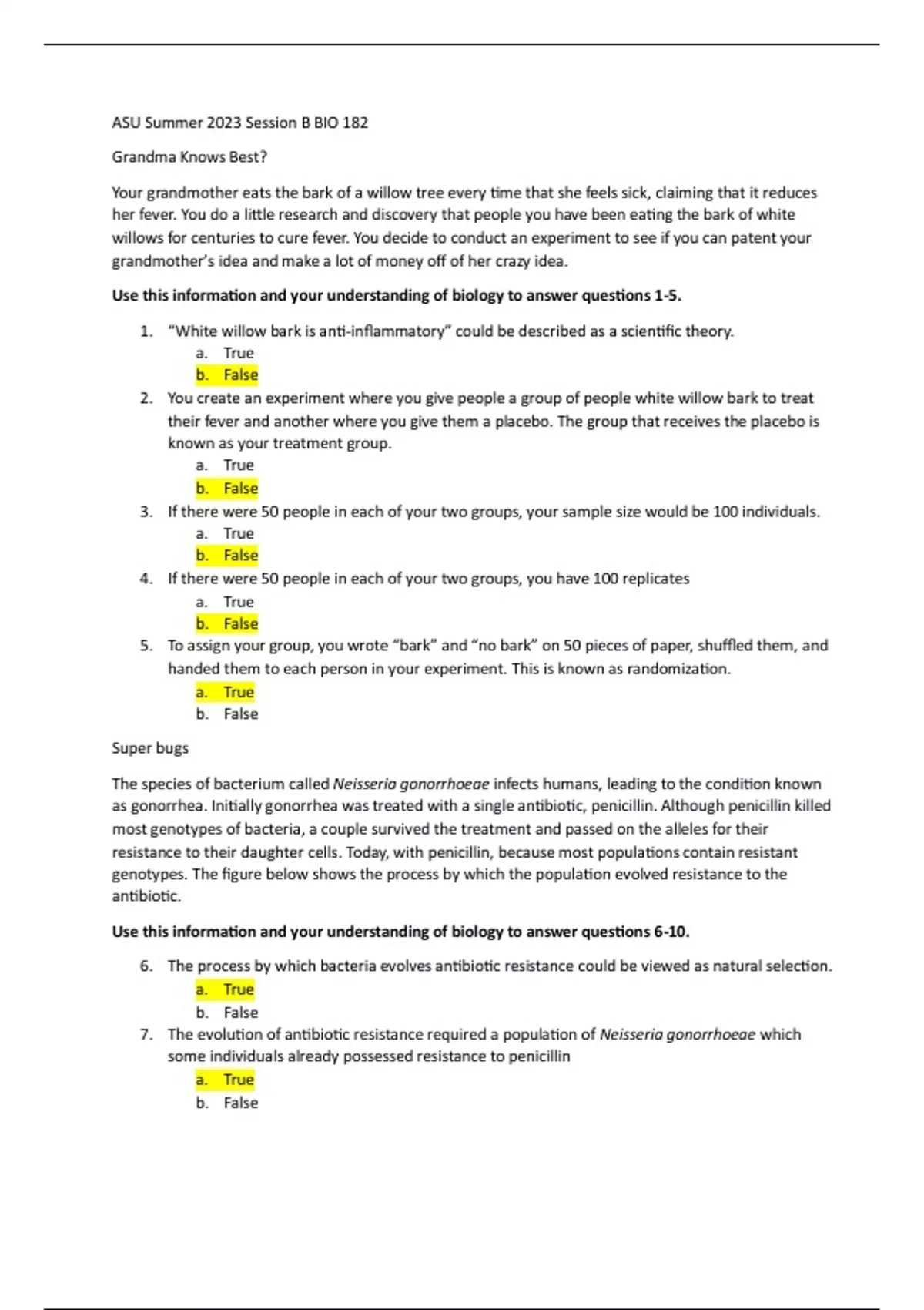 Asu summer 2023 session b BIO 182 Questions and Answers
