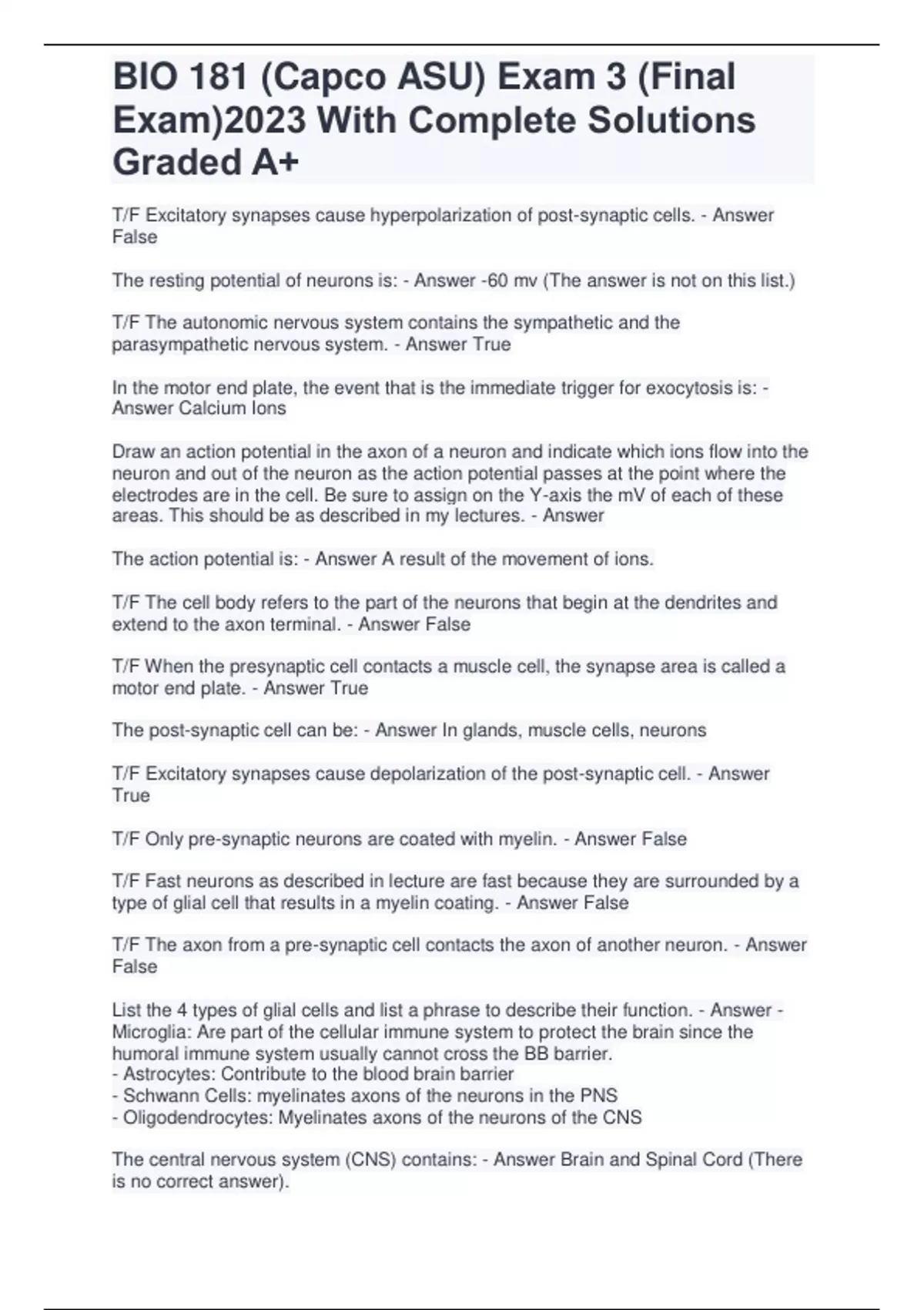 BIO 181 (Capco ASU) Exam 3 (Final Exam)2023 With Complete Solutions Graded A+