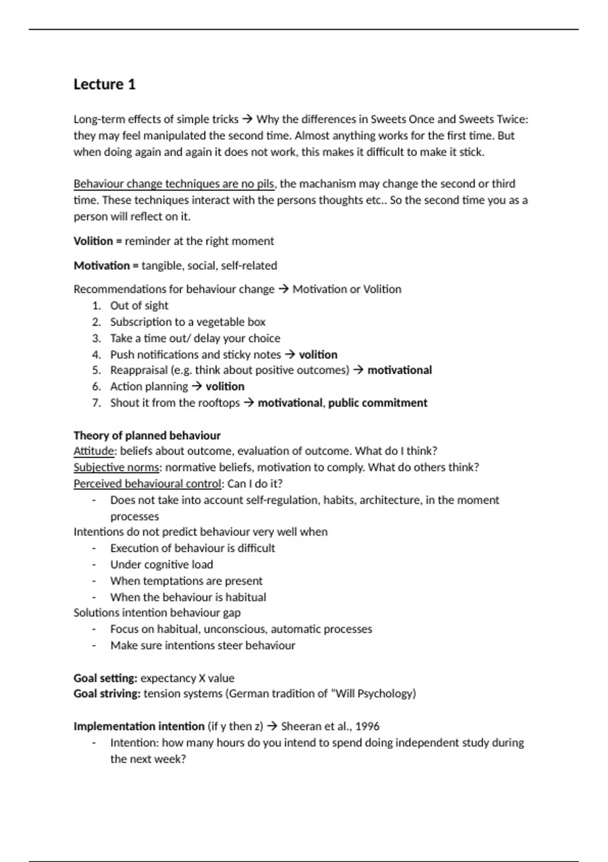 College aantekeningen Psychology of Behaviour Change (CHL52306)