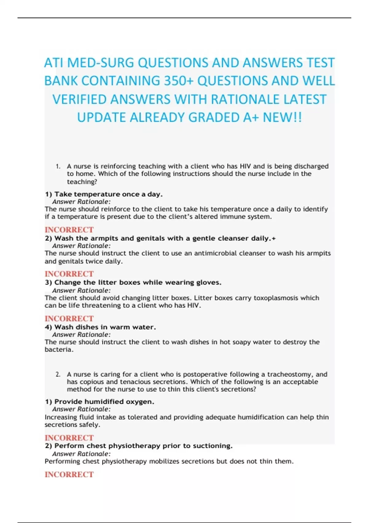 ATI MED-SURG QUESTIONS AND ANSWERS TEST BANK CONTAINING 350+ QUESTIONS AND WELL VERIFIED ANSWERS WITH RATIONALE LATEST UPDATE ALREADY GRADED A+ NEW!!