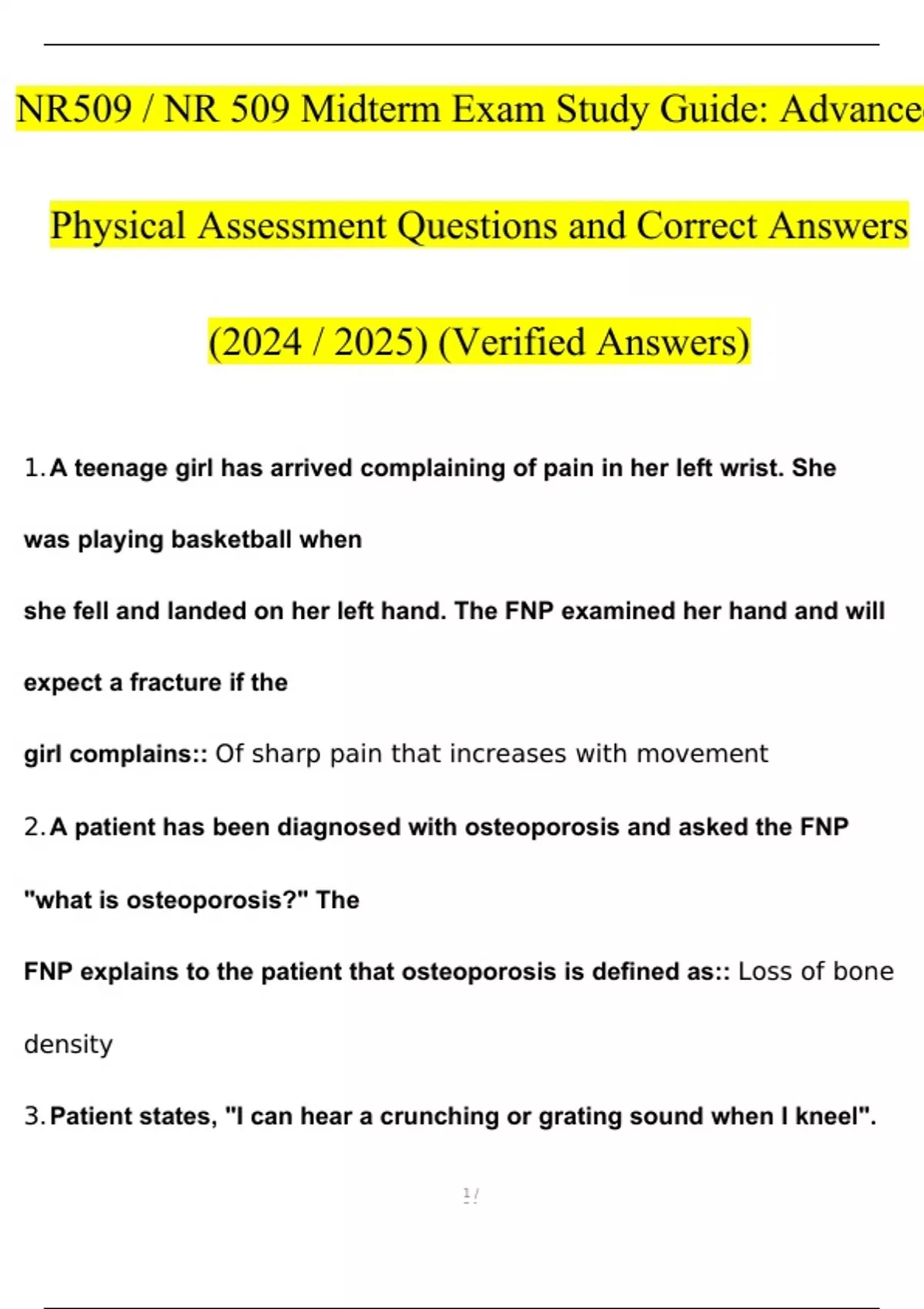 NR509 / NR 509 Midterm Exam Study Guide: Advanced Physical Assessment Questions and Answers (2024 / 2025) (Verified Answers)