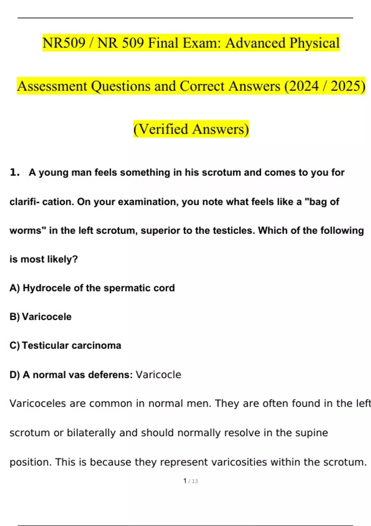 NR509 / NR 509 Final Exam: Advanced Physical Assessment Questions and Answers (2024 / 2025) (Verified Answers)