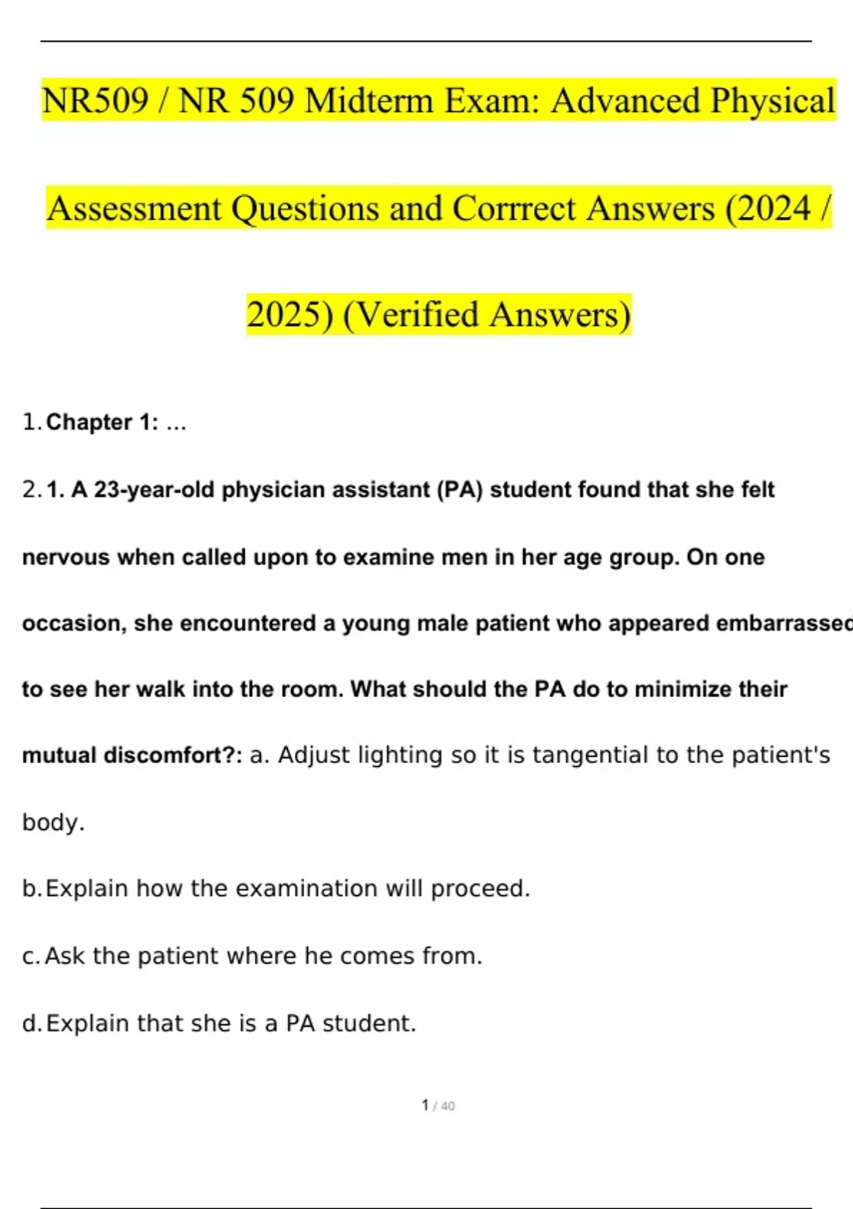 NR509 / NR 509 MIDTERM EXAM & FINAL EXAM STUDY BUNDLE (Latest 2024 / 2025): Advanced Physical Assessment - Chamberlain