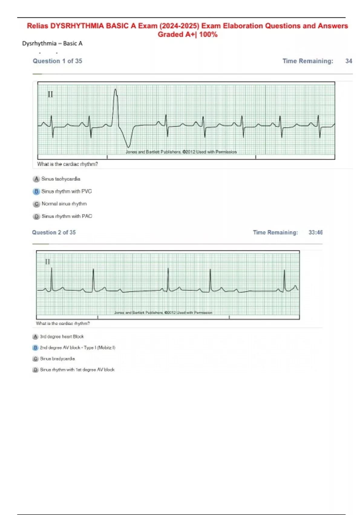 Relias DYSRHYTHMIA BASIC A Exam () Exam Elaboration Questions and Answers Graded A+| 100%