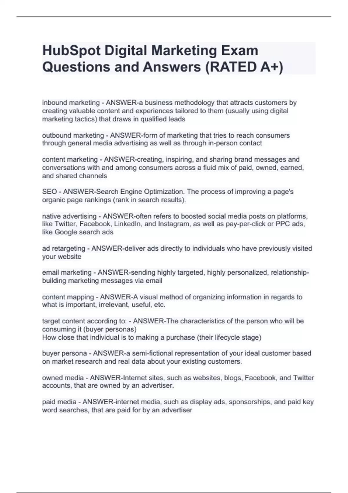 HubSpot Digital Marketing Exam Questions and Answers (RATED A+)